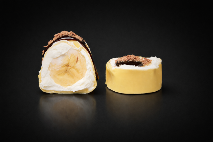 Нежнейший сливочный ролл в блинчике с бананом и шоколадным топпингом со стружкой молочного шоколада,.