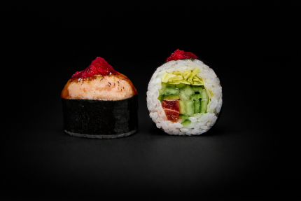 17,00 BYNРис, нори, огурец, томат, салат микс, крем сыр, креветка, икра тобико, сыр чеддер, соус терияки.