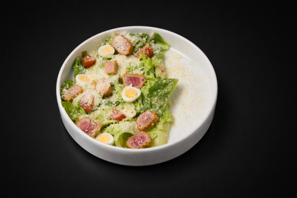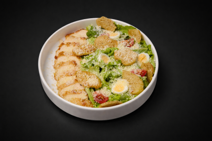 18,50 BYNСалат микс, соус цезарь, филе цыпленка, черри, перепелиное яйцо, гренки из багета, сыр пармезан