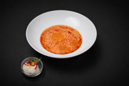 15,90 BYNБульон том кха, кокосовое молоко, куриное бедро, мята, кинза, лук, черри, рис, вешенки, лайм, кунжут ким-чи.
