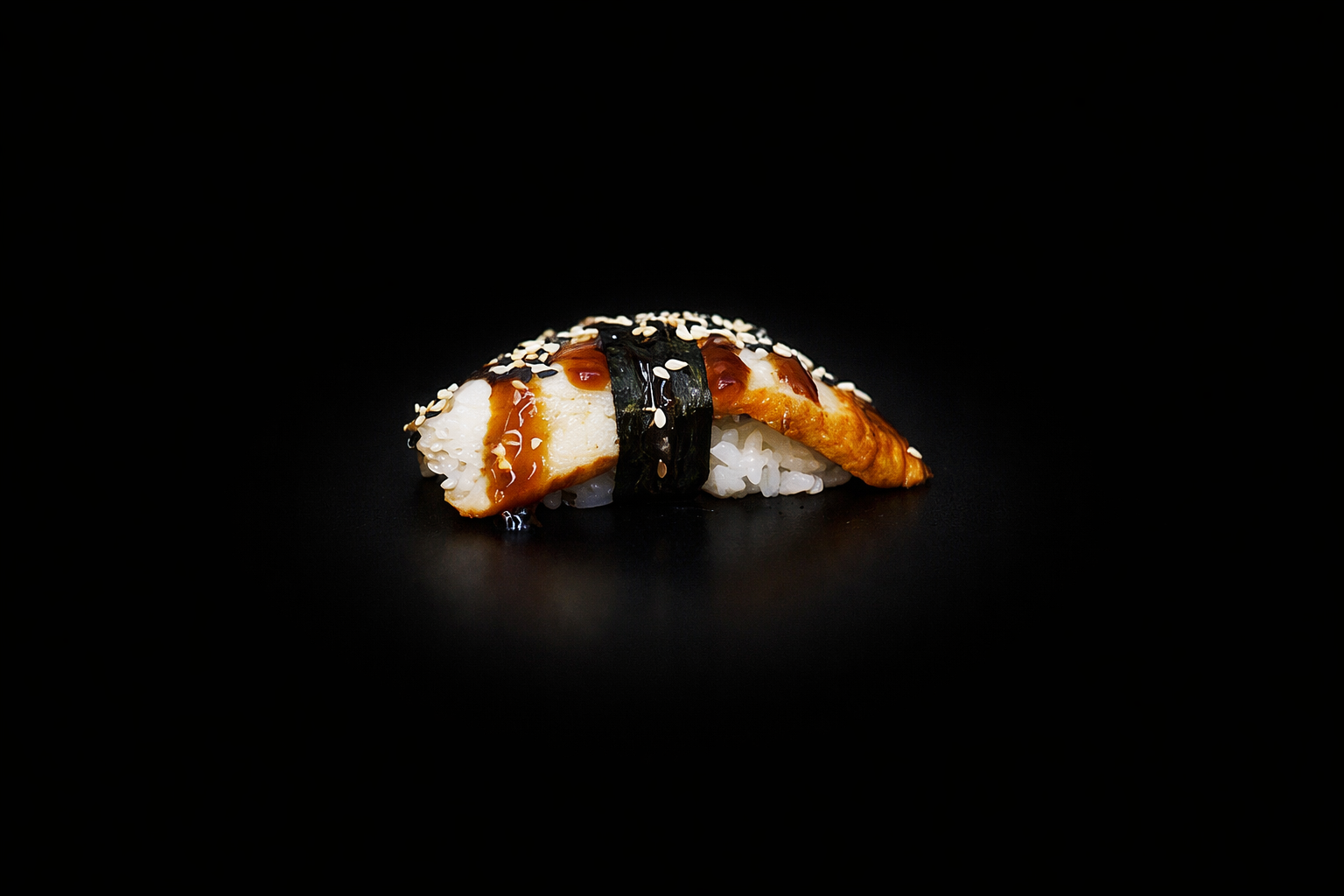 Рис, угорь, соус унаги, кунжут.